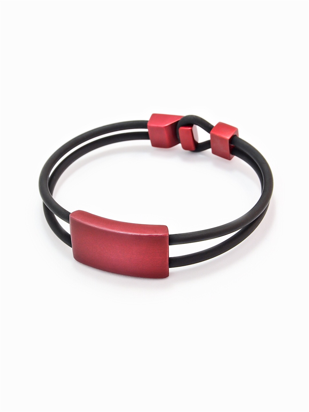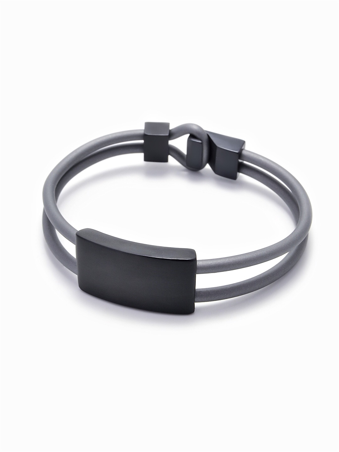 ‘Binomial’ are light and comfortable bracelets for everyday wearing. With simple aesthetic of material contrast between smooth rubber and satin finished aluminium, ‘Binomial’ suit both men and women.